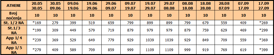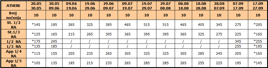 Cene su izražene u evrima po osobi – paket aranžman (smeštaj+prevoz iz Beograda) za 10 noćenja