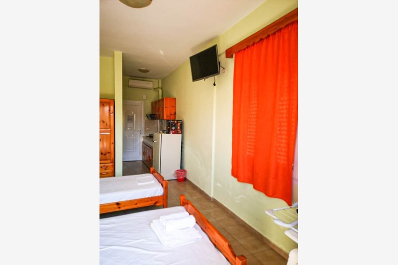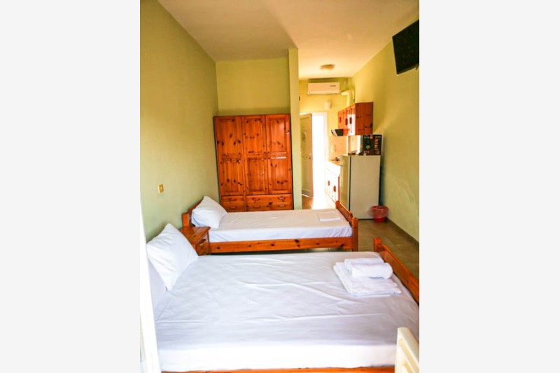 Vila Beyond Atlantis se nalazi u centralnom delu letovališta Kalitea, u šetačkoj zoni i na oko 400 m udaljenosti od plaže. U ponudi su dvokrevetni, trokrevetni I četvorokrevetni studiji koji se nalaze u visokom prizemlju i na prvom spratu. Sve smeštajne jedinice poseduju osnovno opremljenu kuhinju, kupatilo, terasu i TV. Korišćenje klima uređaja je uključeno u cenu najma apartmana. Tokom boravka gosti sami vode računa o higijeni apartmana, dok je promena posteljine na polovini boravka. U objektu postoji i mogućnost korišćenja WiFi interneta.
