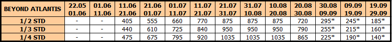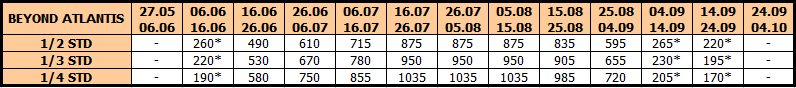 U smenama sa zvezdicom *, u slučaju sopstvenog prevoza cena paket aranžmana se umanjuje za 25€ po osobi.