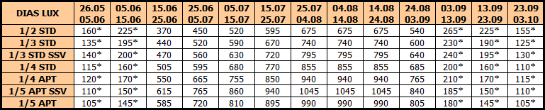 U smenama sa zvezdicom *, u slučaju sopstvenog prevoza cena paket aranžmana se umanjuje za 25€ po osobi.