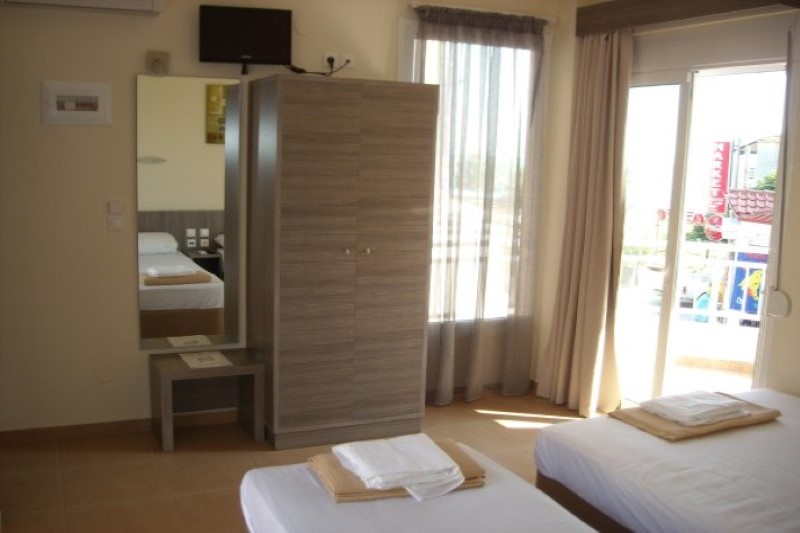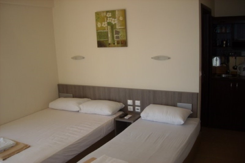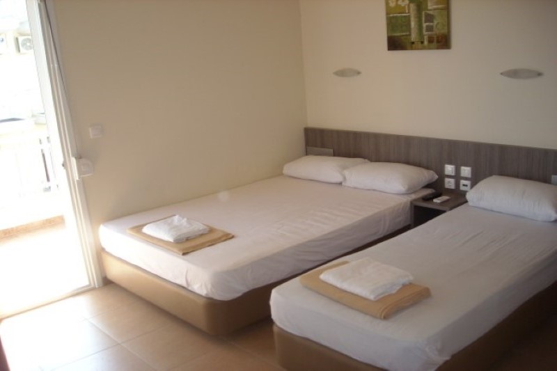 Vila Dimitris se nalazi u centralnom delu Leptokarije na svega 10-ak metara od plaže. Ovaj objekat novijeg datuma poseduje dvokrevetne i trokrevetne studije, koji se nalaze na prvom i drugom spratu. Sve smeštajne jedinice poseduju osnovno opremljenu kuhinju srazmerno broju ležajeva, sa frižiderom, rešoom, posuđem i escajgom srazmerno broju ležajeva, kupatilo, LCD TV sa satelitskim kanalima, klima uređaj čije je korišćenje uključeno u cenu najma apartmana i veoma prostrane terase sa pogledom na more. U vili postoji i mogućnost korišćenja WiFi interneta. Tokom boravka gosti sami vode računa o higijeni apartmana, dok se promena posteljine vrši jedanput u toku boravka.