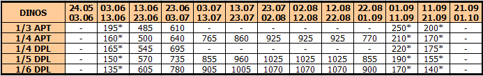 U smenama sa zvezdicom *, u slučaju sopstvenog prevoza cena paket aranžmana se umanjuje za 25€ po osobi.