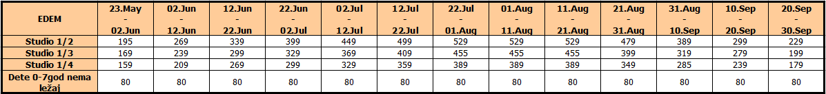 Dete do 7 godine u zajedničkom ležaju u 1/2 studiju u pratnji dve punoplatežne osobe – nema svoj ležaj.