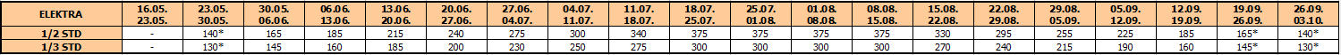 – termini označeni * nemaju umanjenje za sopstveni prevoz