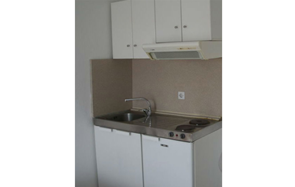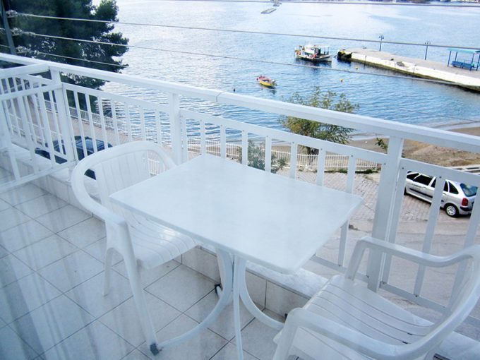 Trokrevetni studio koji gleda pozadi, u dvorište (niža cena – STD 1/2 PROMO, STD 1/3 PROMO), ima malu terasu, nedovoljne veličine za 3 osobe.