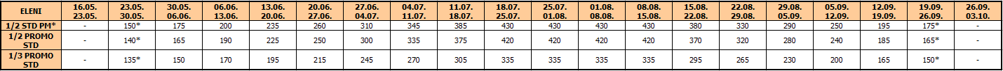 – termini označeni * nemaju umanjenje za sopstveni prevoz