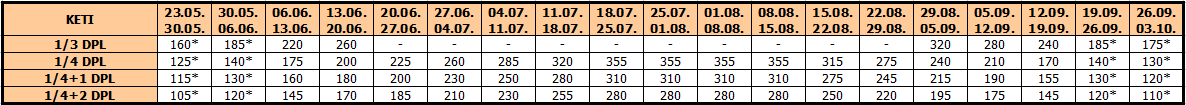 – termini označeni * nemaju umanjenje za sopstveni prevoz