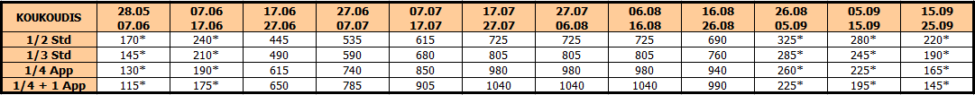 Cene su izražene u evrima po najmu studija/apartmana za 10 noćenja
