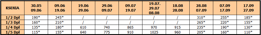 U smenama sa zvezdicom *, u slučaju sopstvenog prevoza cena paket aranžmana se umanjuje za 30€ po osobi.