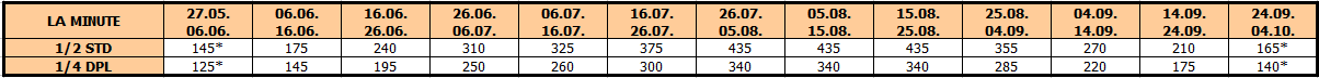 – termini označeni * nemaju umanjenje za sopstveni prevoz