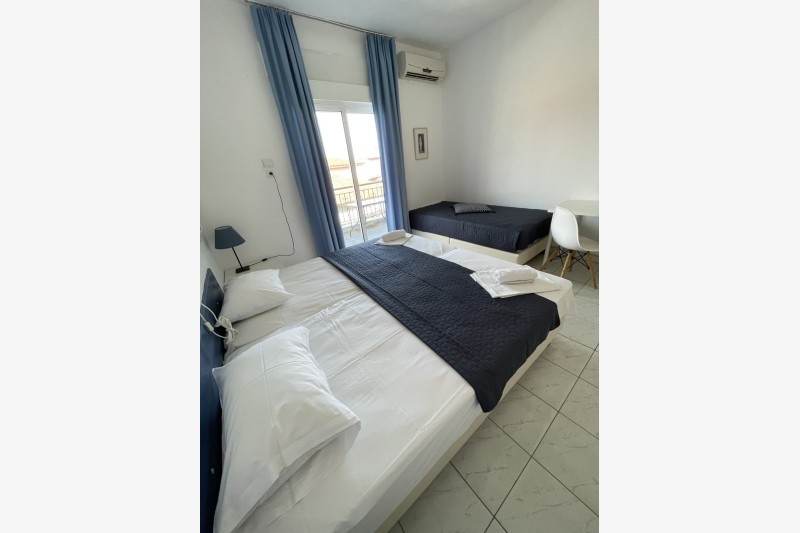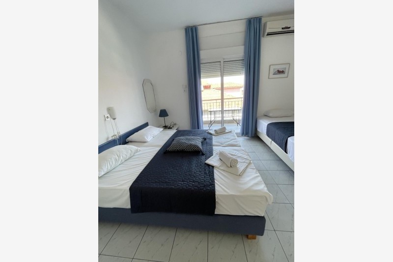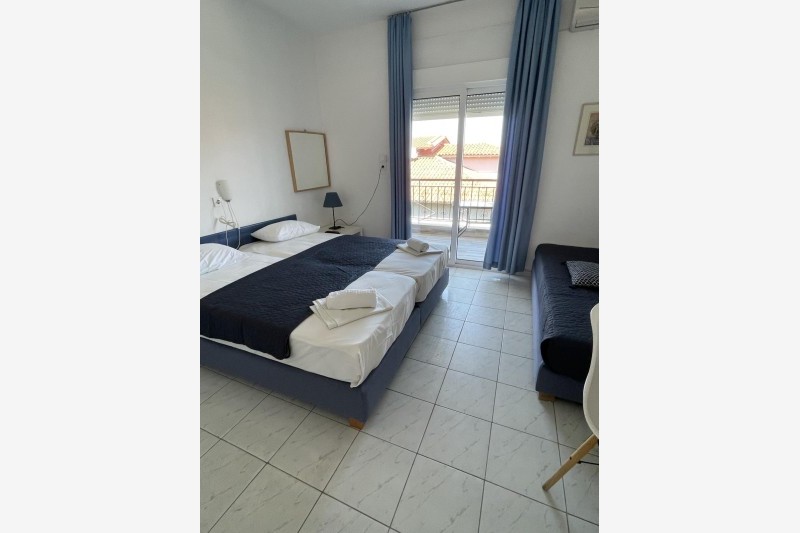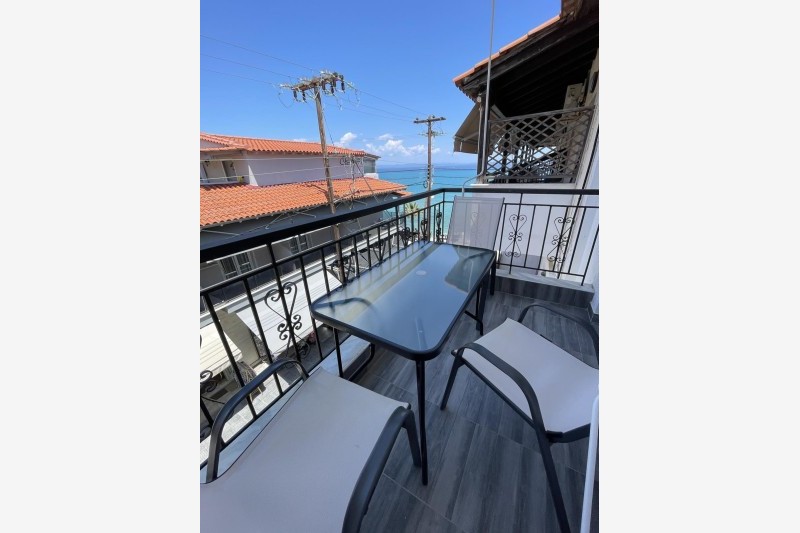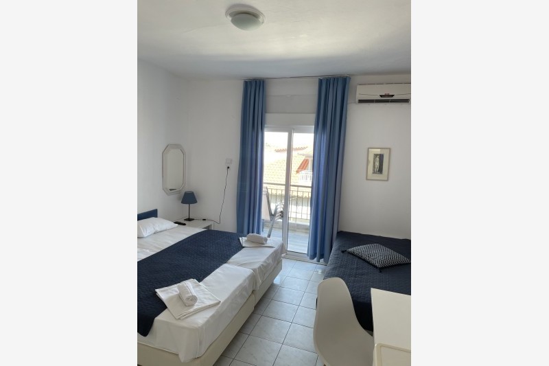 Vila Maria je smeštena na svega 15-ak metara od plaže u centralnom delu Pefkohorija, u šetališnoj zoni. Vila raspolaže dvokrevetnim i trokrevetnim studijima koji se nalaze na drugom spratu. Sve smeštajne jedinice poseduju osnovno opremljenu kuhinju srazmerno broju ležajeva, prostranu terasu, TV i klima uređaj čije se korišćenje dodatno naplaćuje. U vili postoji mogućnost korišćenja WiFi interneta, dok se promena posteljine vrši jedanput u toku boravka.