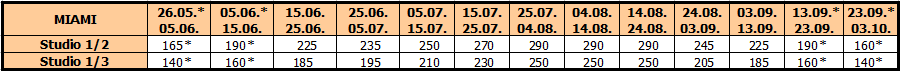 Vila MIAMI se nalazi u centralnom delu Edipsosa, udaljena oko 200 m od gradske plaže i isto toliko od plaže sa termalnim izvorima. Studiji su dvokrevetni i trokrevetni, poseduju odgovarajući broj ležajeva, TWC (tuš kada sa zavesom), opremljenu kuhinju sa rešoom i frižiderom, TV, garnituru za sedenje unutra i na terasi. Upotreba klima uredjaja naplaćuje se na licu mesta 20 eur po studiju za svih 10 dana. Gostima je na raspolaganju WI-FI internet ( agencija nije odgovorna za kvalitet i brzinu ). Vila poseduje lift.
