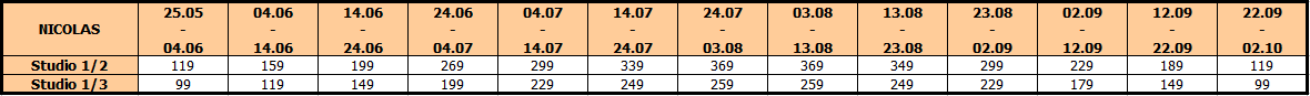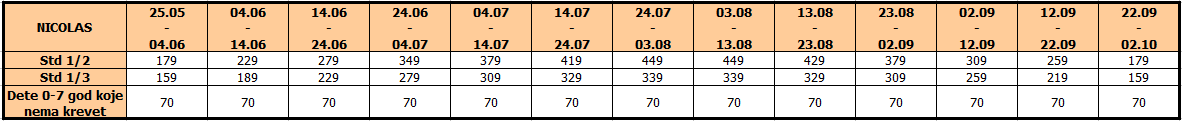 Cene u tabeli su izražene po osobi, na bazi 10 noćenja.