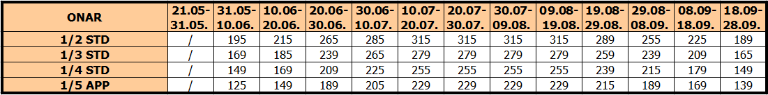 CENOVNIK SOPSTVENI PREVOZ LETO 2026.