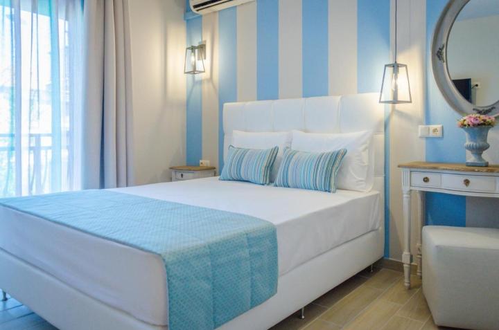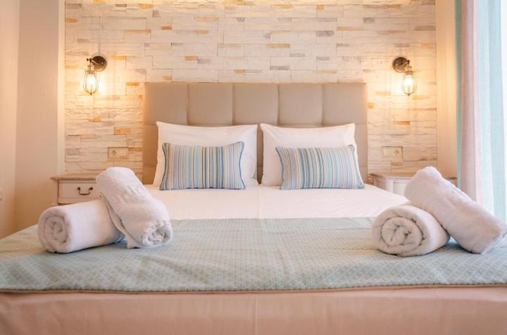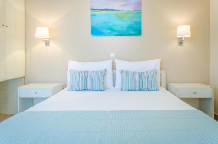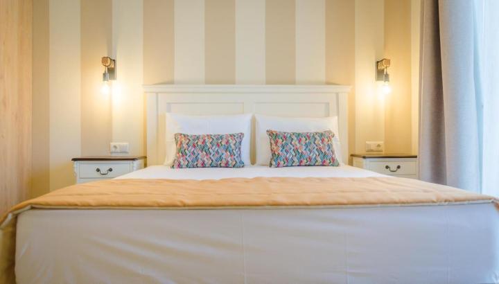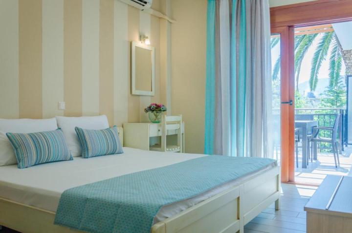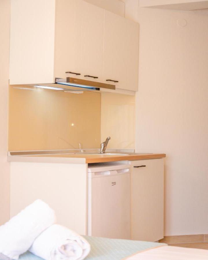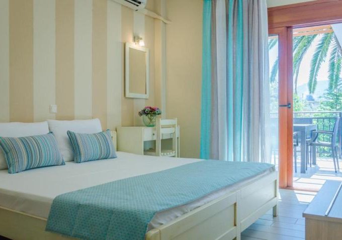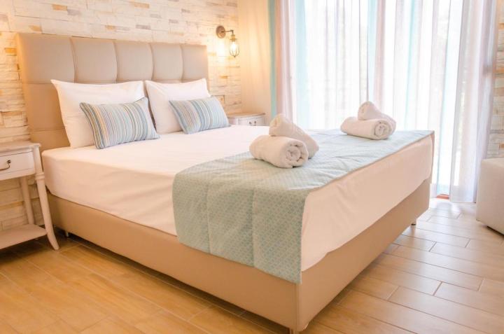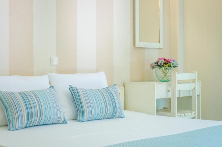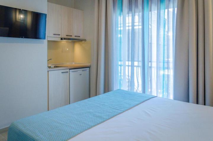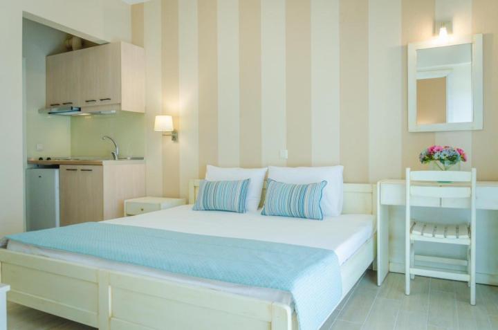 DVOKREVETNI STUDIJI: Moderno opremljeni dvokrevetni studiji se sastoje od dva singl ležaja ili francuskog ležaja, noćnog stočića, ormara, TV, klima uređaja, sefa, čajne kuhinje sa frižiderom i neophodnim posuđem za dve osobe. Kupatilo je sa Tuš/wc-om. Studiji poseduju terase na kojima je sto sa stolicama za sedenje.