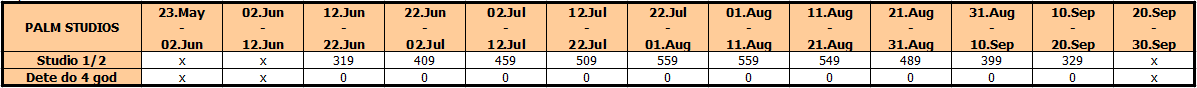 Dete do 4 godine u zajedničkom ležaju u 1/2 studiju u pratnji dve punoplatežne osobe – nema svoj ležaj.