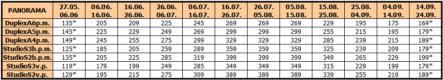 Za sopstveni prevoz cena aranžmana se umanjuje za 30€ po osobi, a 20€ za smene označene ZVEZDICOM (*)