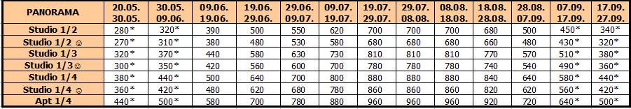 Cene su izražene u evrima po app/studiju, najam za 15 noćenja