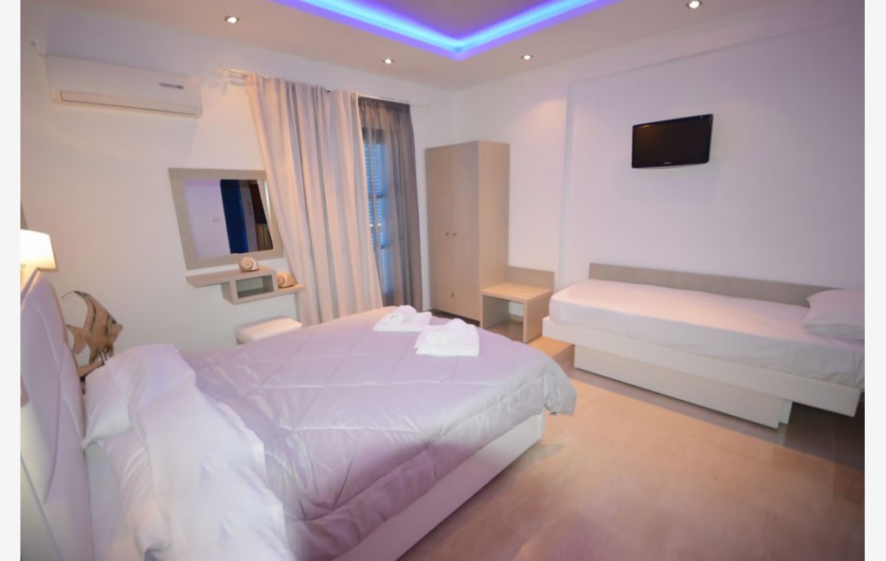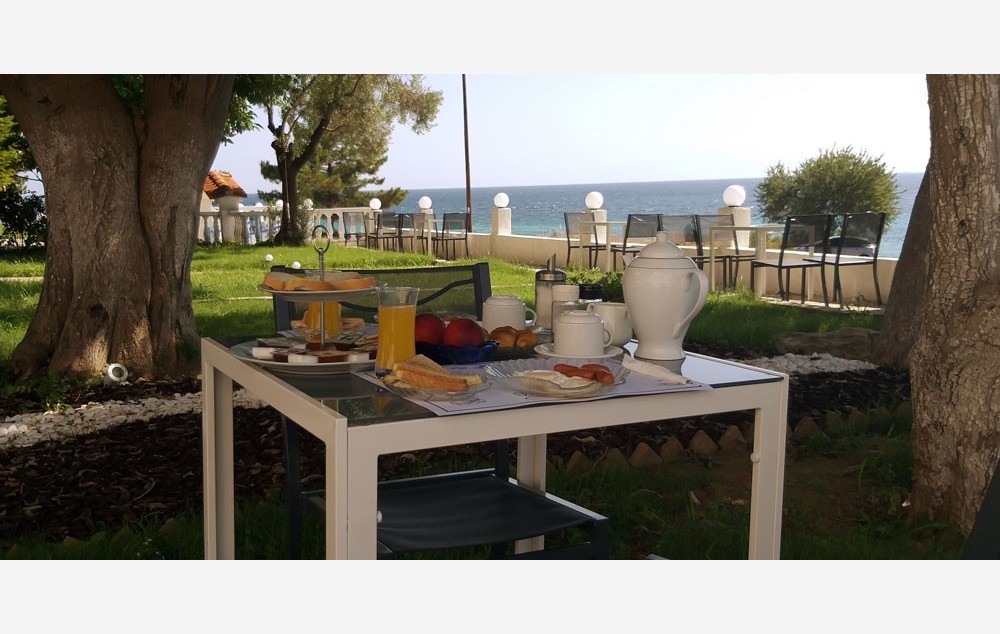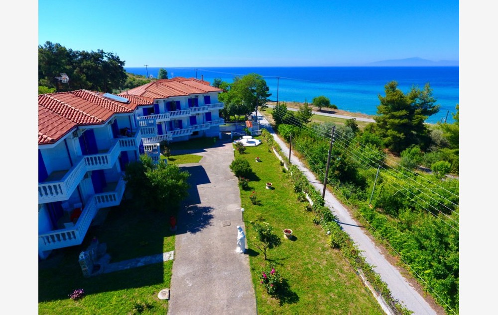 Smešten je na oko 20 metara od plaže, u mestu Nea Kalikratia, na Halkidikiju, i pruža udoban smeštaj za parove i porodice, sa lepim pogledom na more. Plaža ispred samog hotela je bez ležaljki ali se mogu uzeti suncobrani iz smeštaja, sa prelepom čistom vodom i postepenim ulaskom u more. Pored hotela se nalazi i bar gde se može uzeti i piće za poneti.