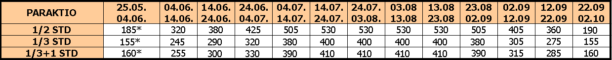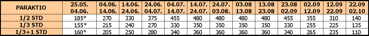– U slučaju spajanju smena, cena se umanjuje za 50€ po osobi na ukupnu cenu paket aranžmana, osim u smenama označenim zvezdicom;