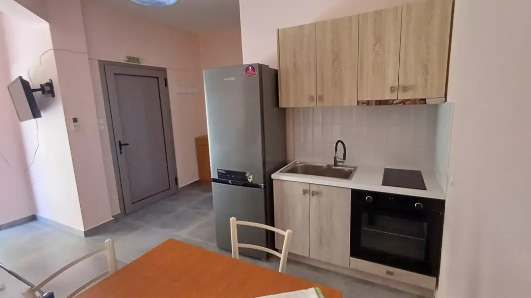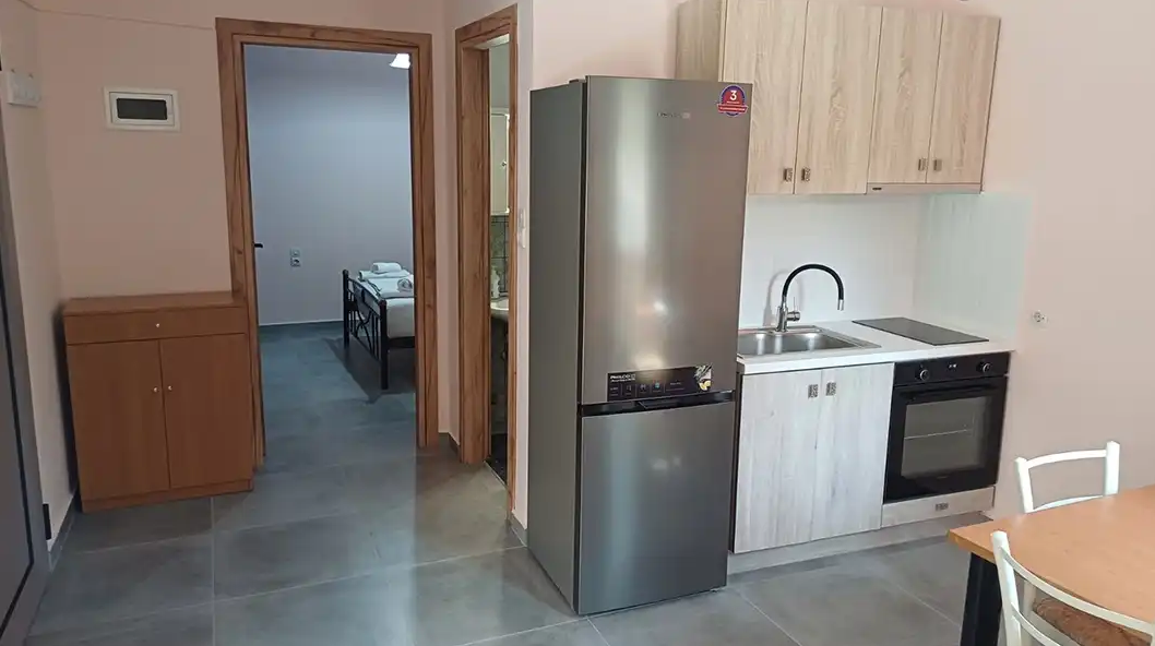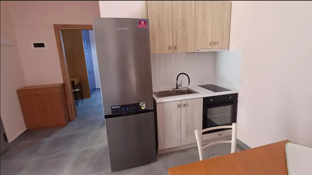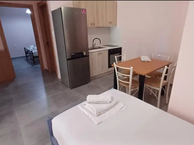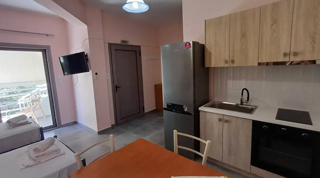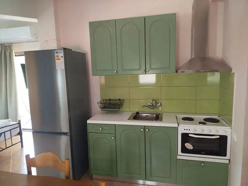 SMEŠTAJ: apartmani 1/4 imaju francuski krevet za maksimalno dve odrasle osobe, jedan ili dva singl kreveta, za maksimalno jednu ili dve odrasle osobe i pomoćni krevet za decu ili odraslu osobu. Takođe raspolaže dečijim krevetićem (na upit, za dete do 3 godine). Sadrže kuhinju opremljenu osnovnim posuđem za pripremu laganih obroka (nije dozvoljena priprema ribe), twc, TV, klima uređaj (uz doplatu 5 eura dnevno) i terasu sa pogledom na dvorište.