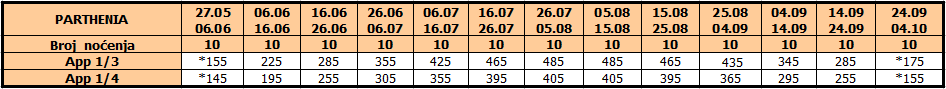 Cene su izražene u evrima po studiju / apartmanu, najam za 10 noćenja