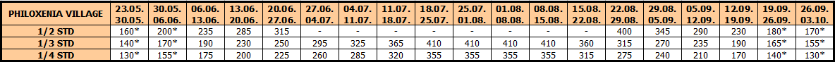 Lokacija: Kompleks vile Philoxenia Village se nalazi u mirnom delu Pefkohoria, ma oko 250 metara udaljenosti od plaže. U neposrednoj blizini se nalazi veliki broj restorana, market, apoteka.