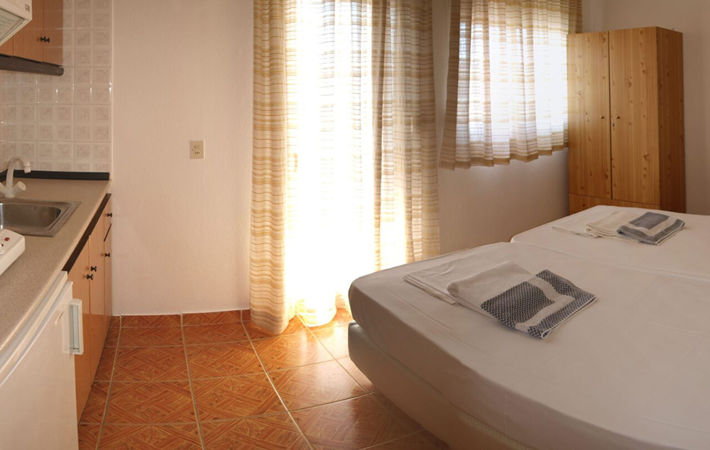Opis: U našoj ponudi su dvokrevetni studiji rasporedjeni na prvom i drugom spratu od kojih većina ima bočni pogled na more ili na šetalište. Svaka smeštajna jedinica poseduje opremljenu kuhinju, kupatilo/wc, terasu, TV, WiFi internet i klima uredjaj ( uključena u cenu aranžmana ). Vila se nalazi na fantastičnoj lokaciji, u samom centru letovališta i na dohvat svih sadržaja kao što su supermarketi, pekare, kafići, restorani, suvenirnice, butici, apoteka. Najbolja preporuka za goste koji vole biti smešteni blizu svih desavanja.