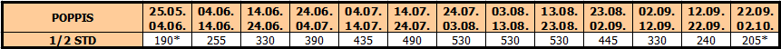 – termini označeni * nemaju umanjenje za sopstveni prevoz