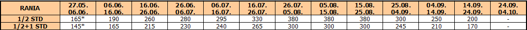 – termini označeni * nemaju umanjenje za sopstveni prevoz