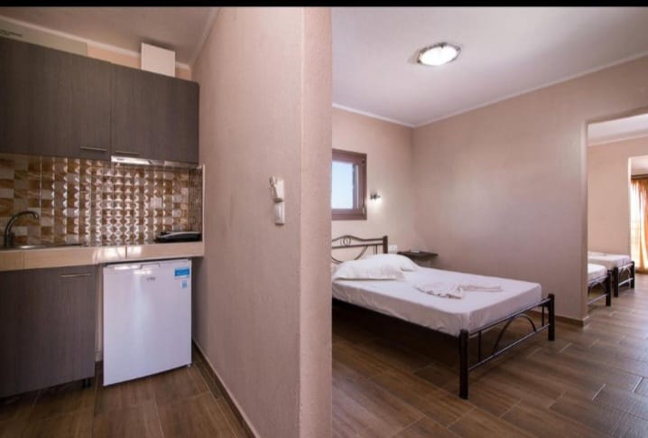 Sun Studios se nalazi na oko 100 metara udaljenosti od plaže odnosno minut hoda. Raspolaže sa komfornim i lepo opremljenim studijima i apartmanima za 2, 3 i 4 osobe koji se nalaze na prvom i drugom spratu, od kojih neki imaju pogled na more. Sve smeštajne jedinice imaju kompletno opremljenu čajnu kuhinju, TWC, TV, klima uređaj i balkon ili terasu. Većina smeštajnih jedinica će biti renovirane za sezonu 2026. Korišćenje klima uređaja se dodatno naplaćuje na licu mesta 5 eura dnevno (nije obavezno). Gostima je na raspolaganju besplatan wireless internet. Posteljina se menja svakih 5 dana.