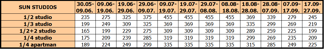 Cene su izražene na bazi najma po studiju/apartmanu za 10 noćenja