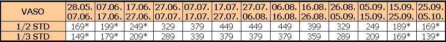 Za sopstveni prevoz cena aranžmana se umanjuje za 30€ po osobi, a 20€ za smene označene ZVEZDICOM (*)