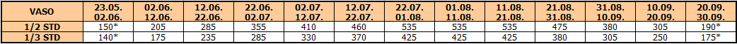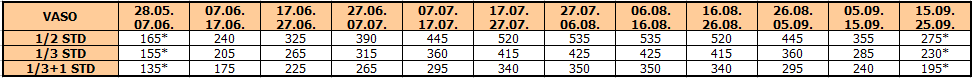 – termini označeni * nemaju umanjenje za sopstveni prevoz