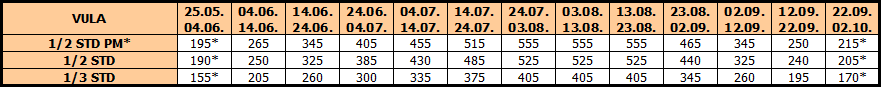 – termini označeni * nemaju umanjenje za sopstveni prevoz