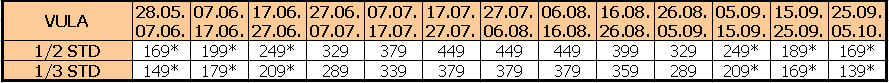 Za sopstveni prevoz cena aranžmana se umanjuje za 30€ po osobi, a 20€ za smene označene ZVEZDICOM (*)