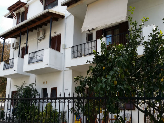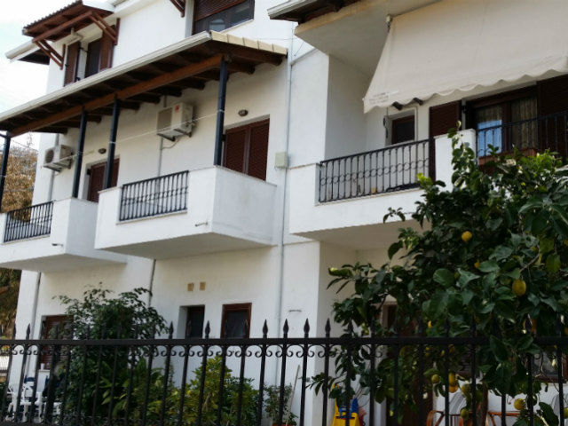 Vila Doukas nalazi se na 30 metara od luke i 350 metara od gradske plaže. Raspolaže 1/4+1 apartmanima (2 francuska ležaja + sofa) i 1/6 apartmanima (francuski ležaj + 3 singl ležaja + fotelja).
