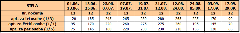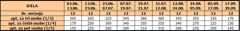 • Ukoliko dete do 12 godina koristi vlastiti ležaj, plaća cenu iz tabele umanjenu za 20€