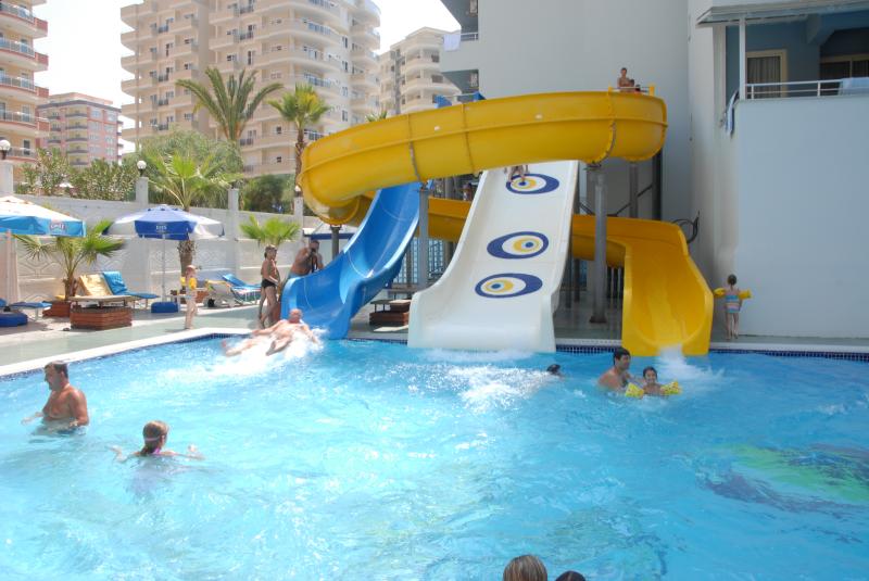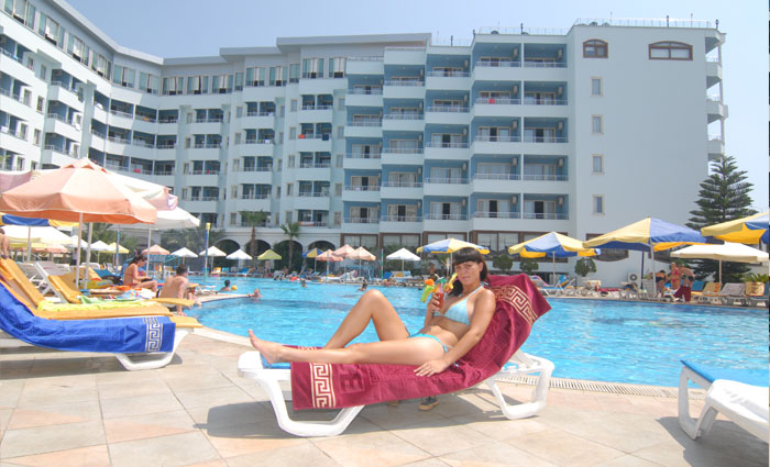 Lokacija: Hotel se nalazi 135 km od aerodroma u Antaliji, 10 km od centra Alanje, samo 250 m od centra Mahmutlara. Izgrađen je 2007. godine, a renoviran 2008. godine. Obuhvata površinu od 9.000 m2.