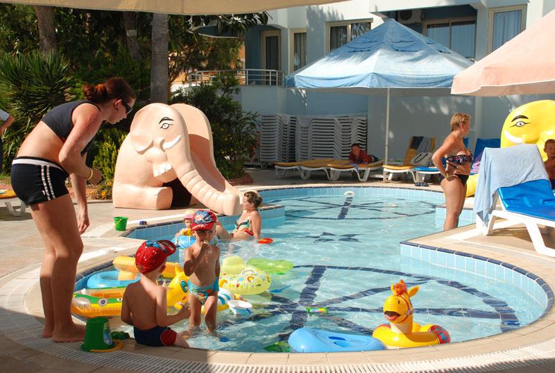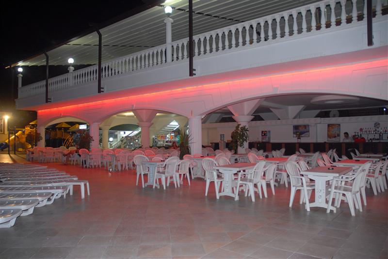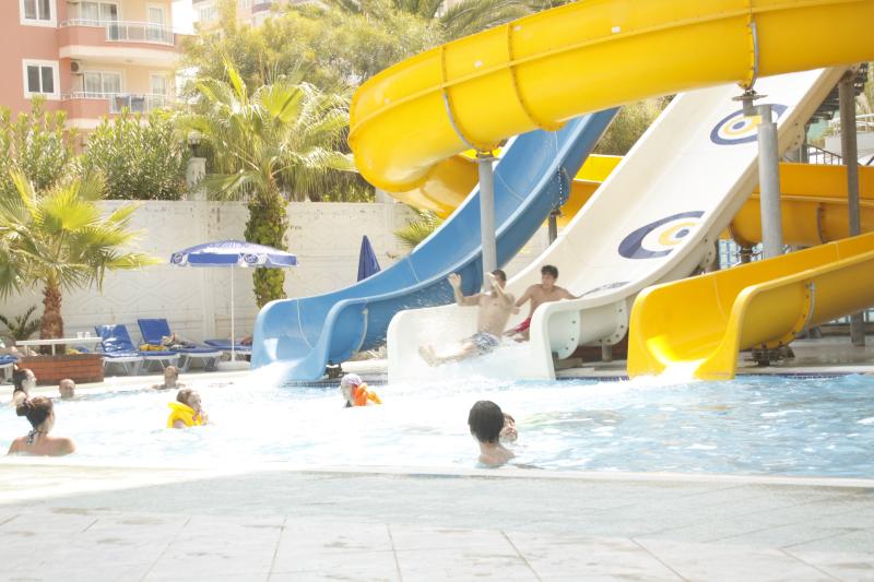 Hotelski sadržaj: Glavni restoran, 2 a la carte restorana (sredozemni, turski – jednom u toku boravka besplatno uz rezervaciju), unutrašnji bazen, frizer, hemijsko čišcenje, 3 tobogana, prodavnice, 4 bara, 2 spoljašnja bazena, 2 konferencijske sale (150-500 osoba), Spa centar, Wi-Fi u lobiju i baru (besplatno), stoni tenis, animacioni programi, teretana, odbojka na plaži, sauna, tursko kupatilo, diskoteka (ulaz), dečiji bazen, 2 tobogana, dečije igralište, mini klub (4-12 godina), deo za decu u restoranu, dadilja (uz doplatu). Plaća se: masaža, jacuzzi, motorni sportovi na vodi, bilijar, ronjenje, doktor .