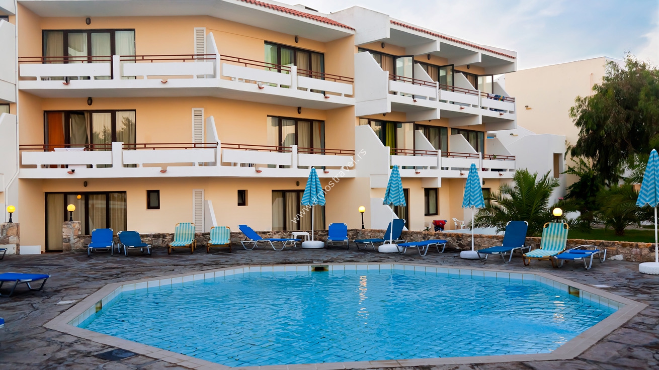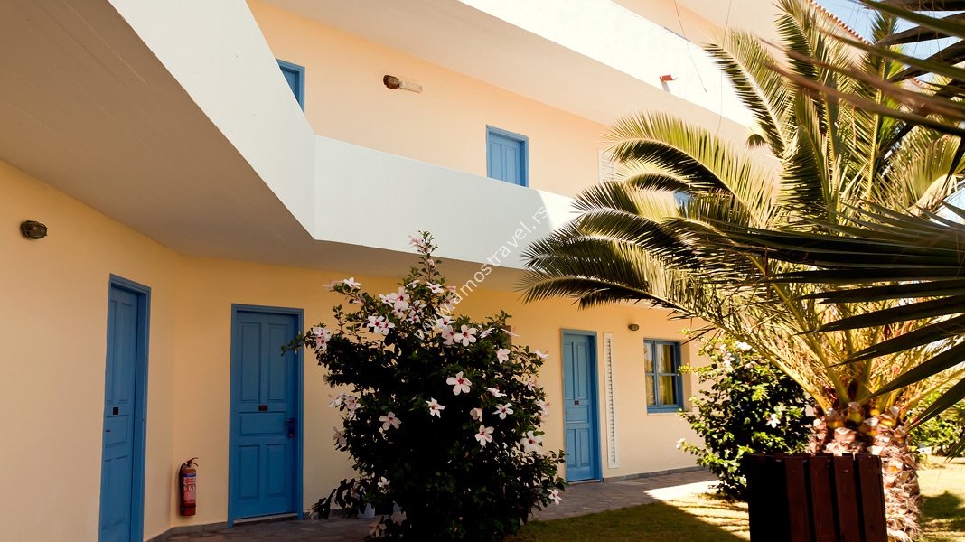 Lokacija: Smešten je na nekoliko metara od plaže Lambi. Grad Kos je na samo 4 km udaljenosti, a od aerodroma Hipokrat u Kosu je udaljen je 24 km.