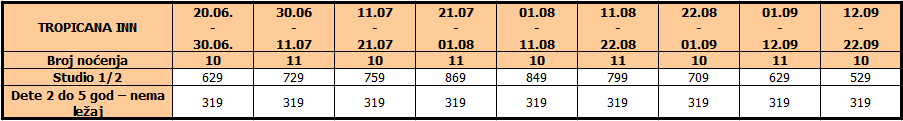 Cene u tabeli su izražene po osobi, na bazi 10 noćenja.