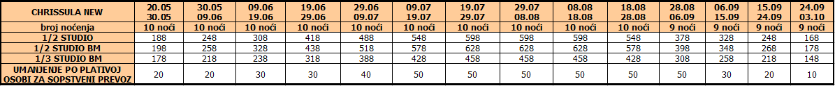 Cene iz tabele predstavljaju cenu paket aranžmana (smeštaj + prevoz) po osobi.