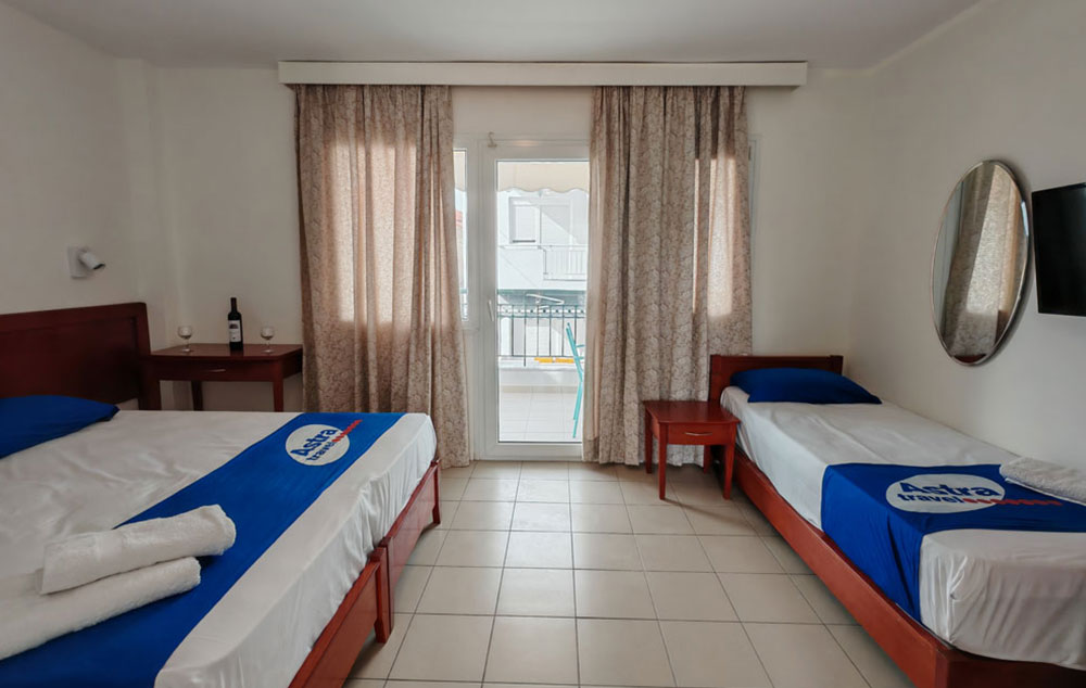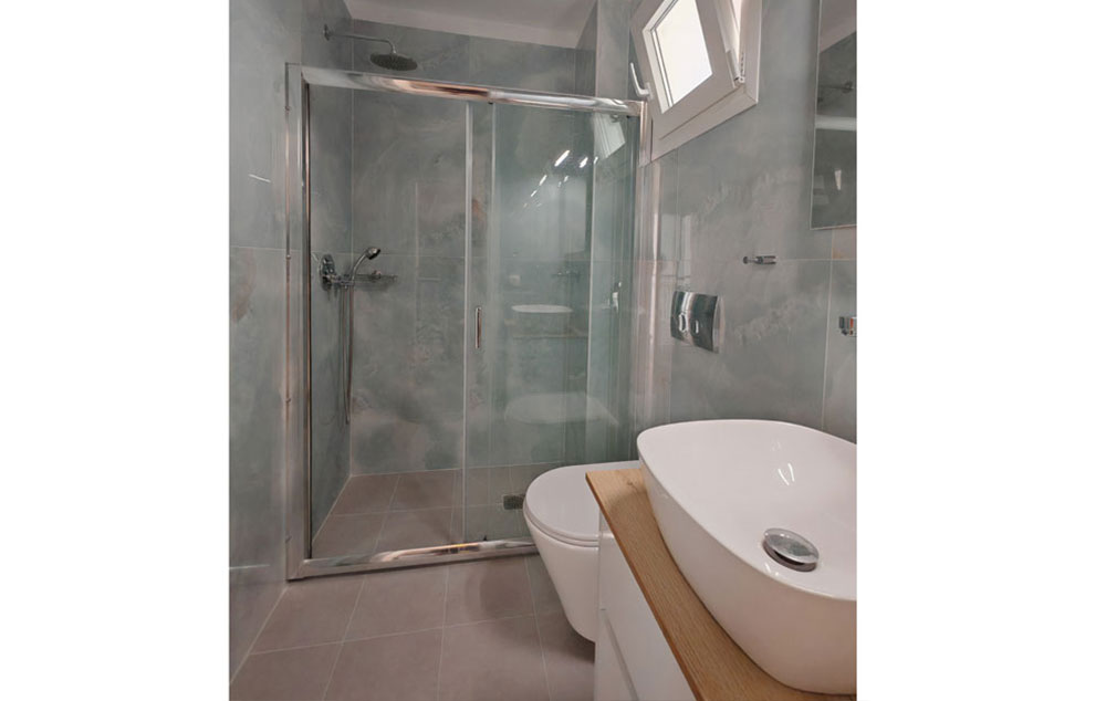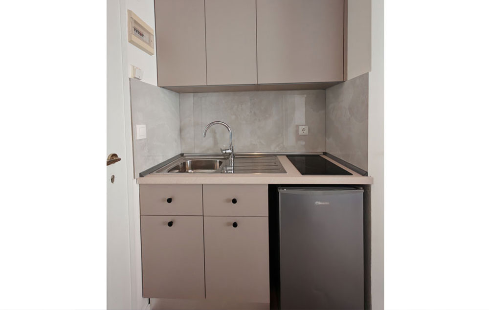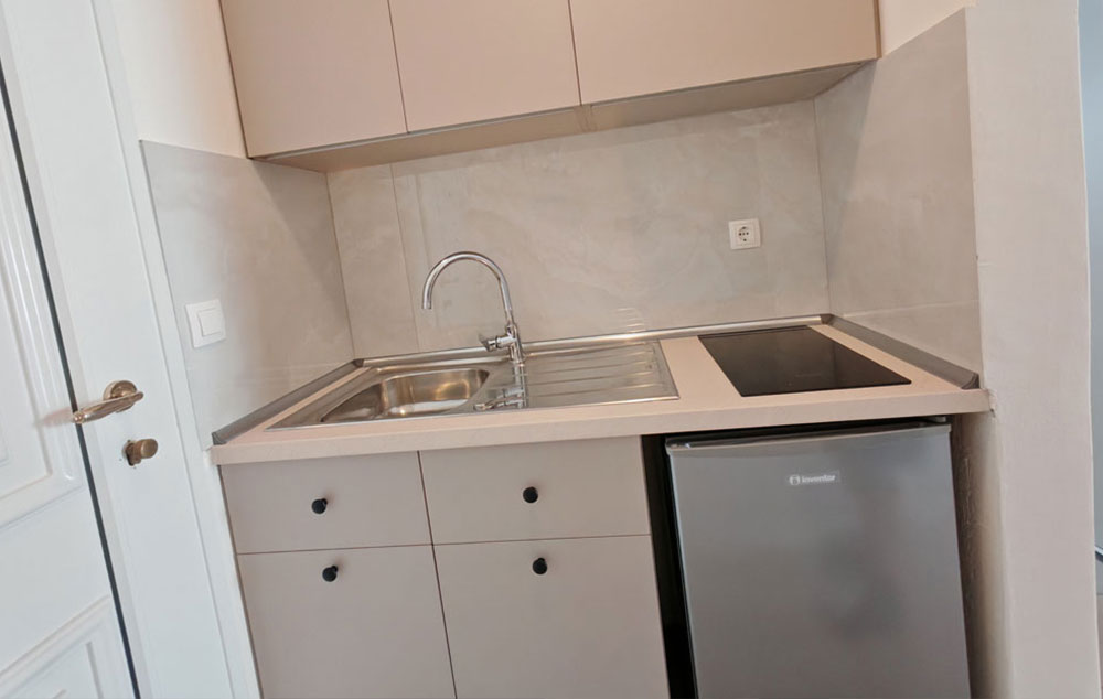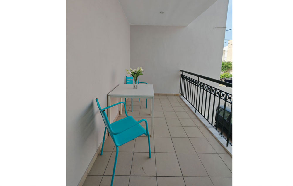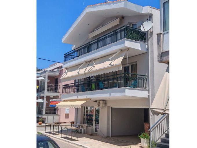 Smeštena je u neposrednoj blizini plaže. Kuća ima SAT TV, WiFi i klima uređaje čije je korišćenje uključeno u cenu. Dva studija imaju terase sa pogledom na ulicu, a dva su sa bočnim pogledom na more. Zbog svoje pozicije ovo je jedna od najtraženijih kuća u našoj ponudi. Na 20m od kuće je peščani uređeni deo plaže, a na oko 120m nalazi se jedini stenovito-peščani deo plaže u Sartiju, poznatiji po restoranu „Vrahakia“ (gr.prev.vrahaki-stena). Kuća je renovirana 2025 godine.