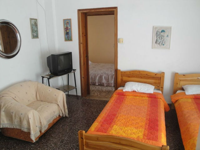 Vila je smeštena u centru Pefkija, pored crkve, udaljena oko 120 m od centralnog dela plaže. Iako starijeg datuma gradnje, za nju smo se opredelili zbog gostoprimstva domaćina i dobrog održavanja same kuće. Vila raspolaže sa dvokrevetnim i trokrevetnim studijima(gde postoji mogućnost ubacivanja dodatnog ležaja) kao i četvorokrevetnim apartmanima. Svaka smeštajna jedinica sadrži čajnu kuhinju, TV, WiFi,TWC, klima uređaj koji je uračunat u cenu.Posteljina se menja na svakih 5 dana.