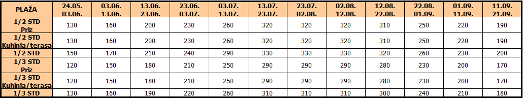 – Cena apartmana/studija/mezoneta naplaćuje se po ležaju tj. sedištu u autobusu. Veličina smeštajne jedinice označava i minimalan broj paket aranžmana koji se naplaćuju.