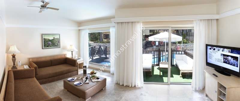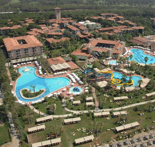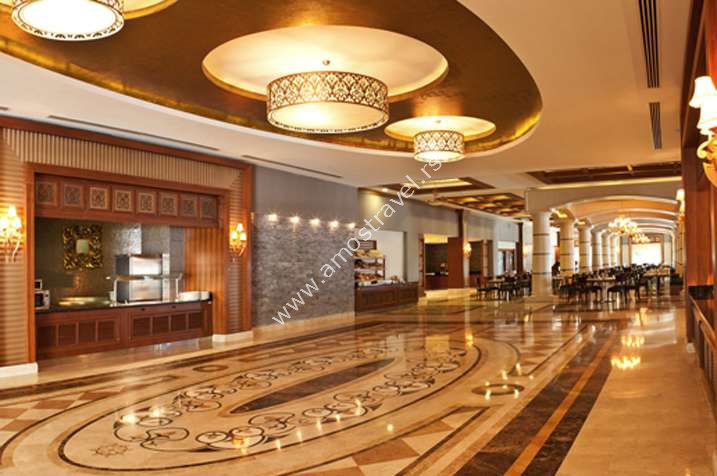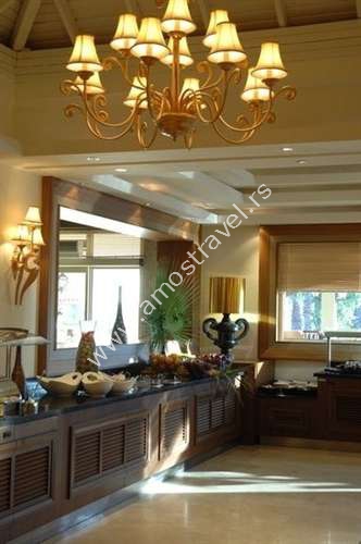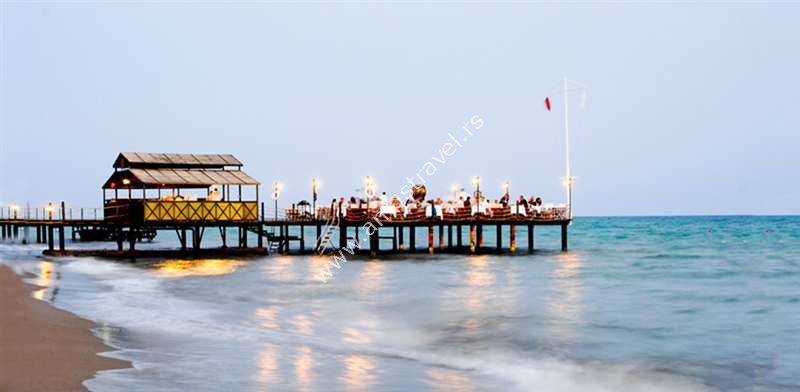 Hotelski sadržaj: Resort je renoviran 2008. godine i ima glavni restoran, 6 A la carte restorana(nemački, internacionalni, otomanski, Kebap, riblji, kineski), 5 barova(Zoom, Pool, Beach, Bar Bianco, Beach Disco Bar), Café A la Turca, diskoteku. Za decu su tu 2 dečija bazena, mini klub, teenage klub, igralište, mini golf, mini disko. Čuvanje dece se naplaćuje.