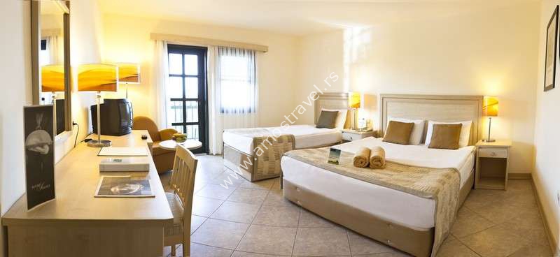 Raspodelu soba u hotelu vrši recepcija po dolasku. Agencija će proslediti Vaše zahteve i želje, ali nije u mogućnosti da garantuje za iste (spratnost, pogled, tip ležaja, tačno određena lokacija u okviru hotelskog kompleksa i slično, udaljenost od plaže, resotrana itd. ukoliko u ponudi nije tačno i konkretno istaknuta vrsta i tip sobe). Slike soba u katalogu i na sajtu su date radi informacije.