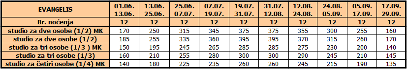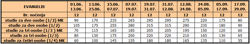 • Ukoliko dete do 12 godina koristi vlastiti ležaj, plaća cenu iz tabele umanjenu za 20€