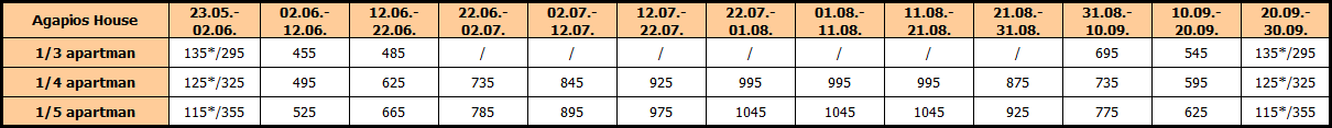 Cene su izražene u eurima po studiju/apartmanu na bazi najma za 10 noćenja